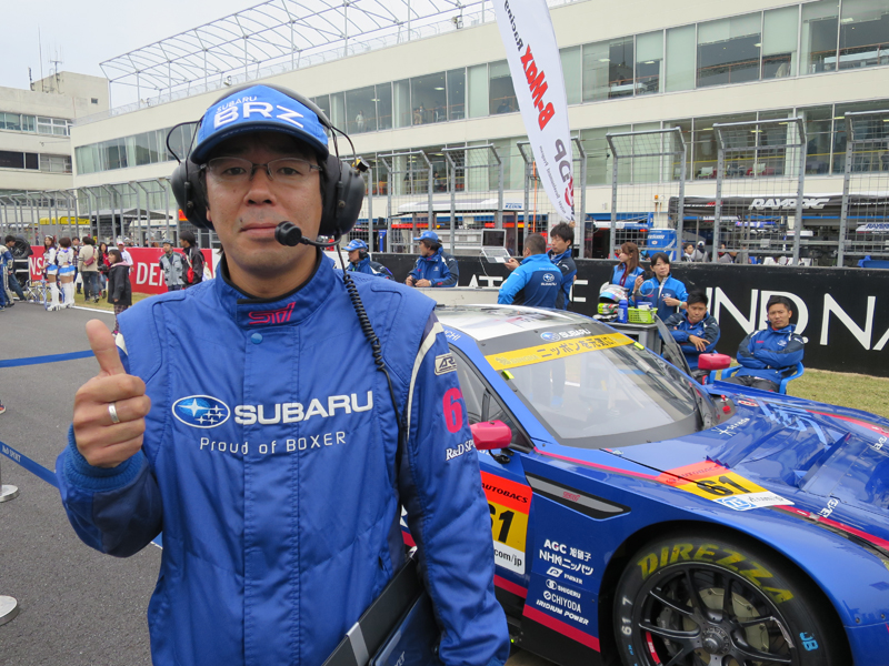 「やはり低重心で、コーナリングスピードが速いというのが最大の特徴ですね。以前走らせていたSUBARU LEGACY B4 GT300と較べるとホイールベースも短く、小さいコーナーなどは得意と言えるでしょう。今年は苦戦が続いていますが、タイヤ、車種、レギュレーションが大きく変わる時はデータの検証が重要になってきますので、やりがいがあります。最終戦のツインリンクもてぎではなんとか勝てるようにチーム一丸となって頑張りますので応援よろしくお願いいたします」