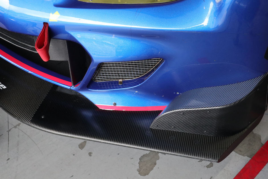 岡山のテストでは、BRZ GT300はフロントスポイラーの両端にカナードと呼ばれる空力パーツを装着してテストしましたが、今回はフリックボックスという箱状のパーツを装着して走行しました。フロントのダウンフォースを増やすだけでなく、ボディに張りつこうとする空気を剥がして後方に流す役目も担います。このパーツを外して小さな翼端板形状の空力パーツに交換したり、リアフェンダー前方にカナード形状のフィンを装着するなどの組み合わせをトライしていました。小澤総監督は、「今は、空力セットも色々な組み合わせを試しており、状況に合わせて使い分けしようとしています。つまり、引き出しをたくさん作っておこうということです」と説明しています。