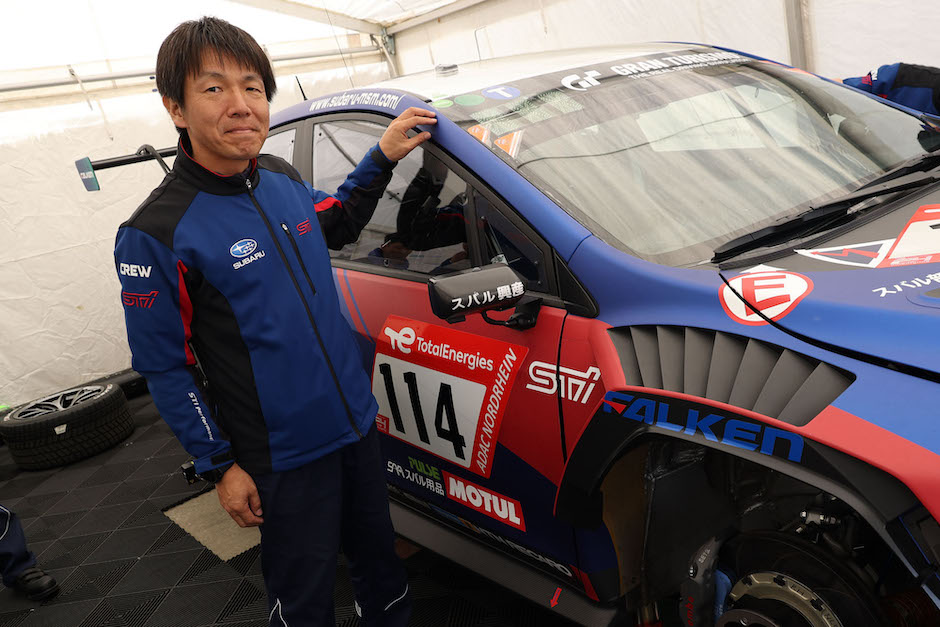 5月20日(土)、第51回ADACニュルブルクリンク24時間レース決勝日の朝を迎えました。曇りがちですが、前日までと同様にポカポカと暖かい日和です。朝10時半過ぎには、日本からの応援ツアーが到着。STIの平岡社長、辰己総監督、沢田監督が並び、「遠路はるばるお越しいただきありがとうございます。昨日まではトラブルもありましたが、なんとか解決しています。レースを目の前で観戦いただきながら応援をよろしくお願いします」と辰己総監督が挨拶すると、大きな拍手が発生しました。一行とドイツのSUBARUファンクラブが合流し、記念撮影をパチリ。その後、ドライバー4名を加えたチーム全体で朝礼です。最後に「やるぞっ、オーッ!」の掛け声でレース前準備の作業を開始しました。