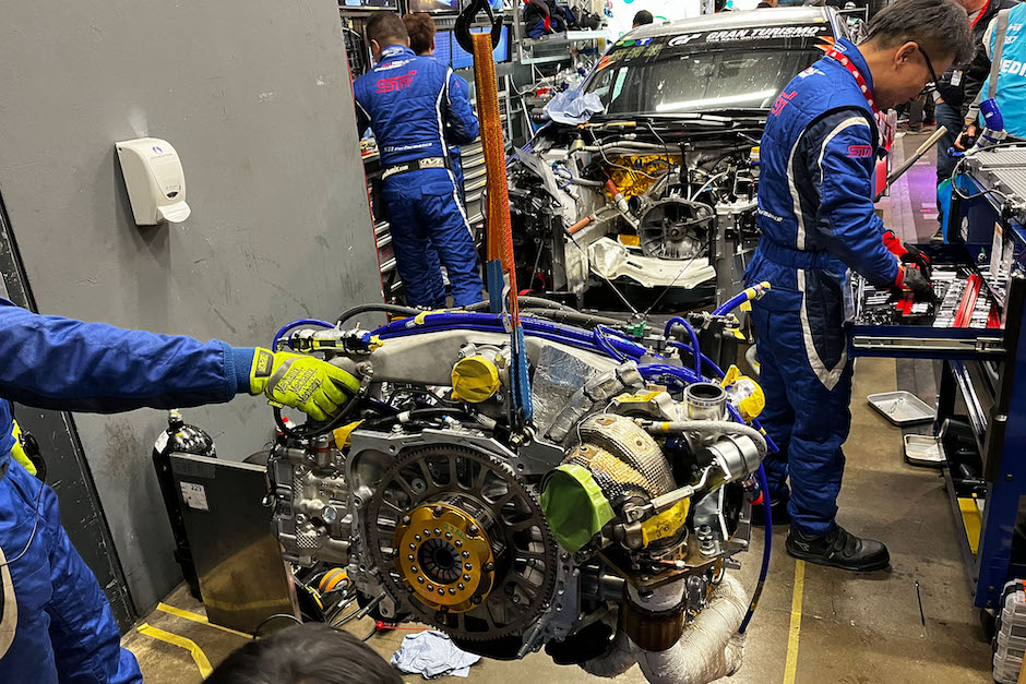 ディーラーメカニックの皆さんもチームやサーキットの雰囲気にも慣れてきて、落ち着いて作業にあたっています。山形スバルの鈴木亮祐さんは、「もうだいぶ慣れてきて、現地の方に英語で話しかけられるようになりました。昨日オフィシャルショップでジャケットを買ったんですが、ホテルで試着してみたらブカブカでした。今日小さいサイズに交換して、とお願いに行ったらバッチリ通じました」と笑顔を見せてくれました。寄せ書きにも、アルファベットで所属と氏名を書いていました。また、ディーラーメカチームのムードメーカーである東京スバルの三井雄太さんは、「私は、右フロントが担当です。普段は安全最優先なので、温度の高いブレーキローターを触ることはありませんが、レースではまるで逆です。熱いうちに交換しないとならないので、安全には気をつけないといけませんね。また、ピットが狭いので、他のチームの作業にも気をつけなければなりません。適度な緊張をもってレースに臨みます」と語ってくれました。