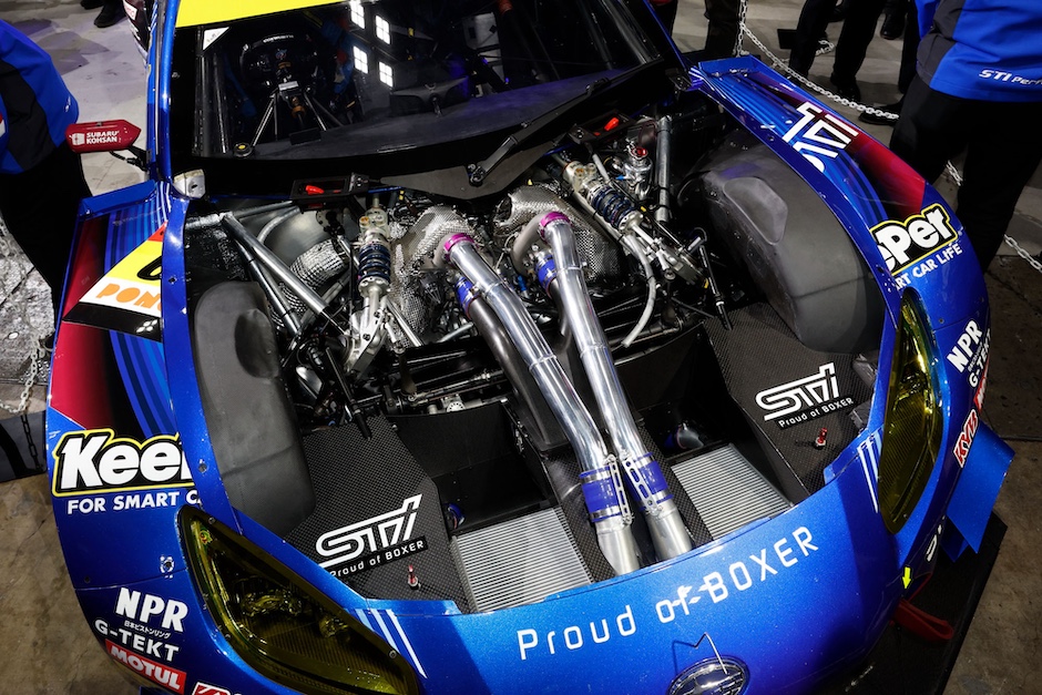 カンファレンス第2部は、STIの賚寛海(たもう・ひろみ)社長が登壇し、モータースポーツ計画の詳細を発表しました。その中で、SUPER GTシリーズに参戦するSUBARU BRZ GT300には、新開発のEG33型6気筒水平対向ツインターボエンジンを搭載し、シリーズ初戦から投入することを発表しました。このエンジンは旧型BRZ GT300シャシーに搭載してすでにテスト走行を繰り返しており、開発は順調に推移しているとのこと。また、昨年2025年シーズンから導入している新シャシーは、この6気筒エンジンを搭載することを想定して開発したものであり、大きな手直しなく4気筒のEJ20エンジンから換装できている、と語っていました。これまで通りSTIの小澤正弘がチーム総監督を務め、レース運営を担うR&D SPORTの澤田稔が監督を務めます。ドライバーも井口卓人、山内英輝のコンビは不変であり、リザーブドライバーには引き続き奥本隼士が登録されます。2026年モデルBRZ GT300は、1月末からテスト走行を開始し、3月のSUPER GT公式テストからファンの前で走行することになります。