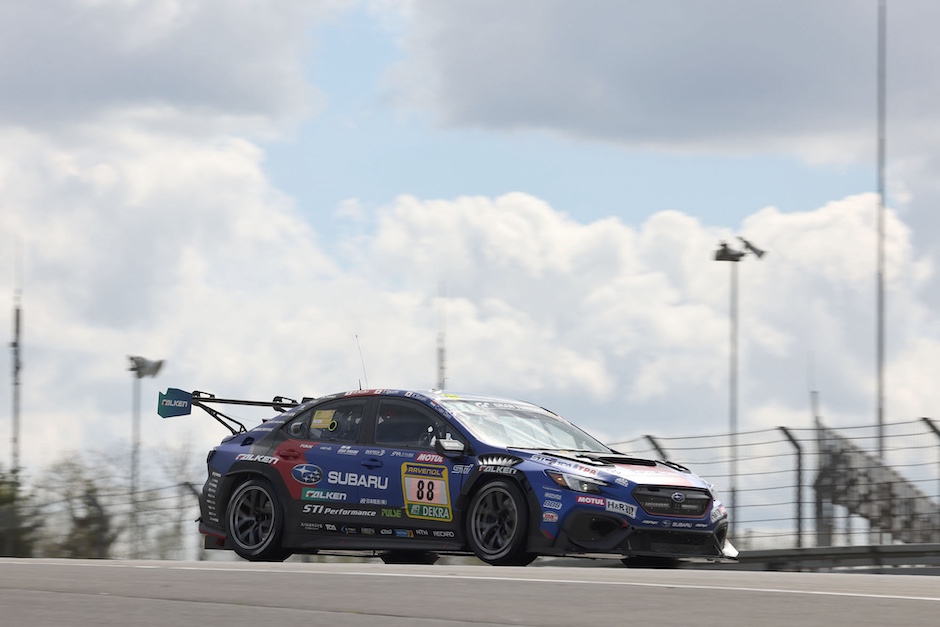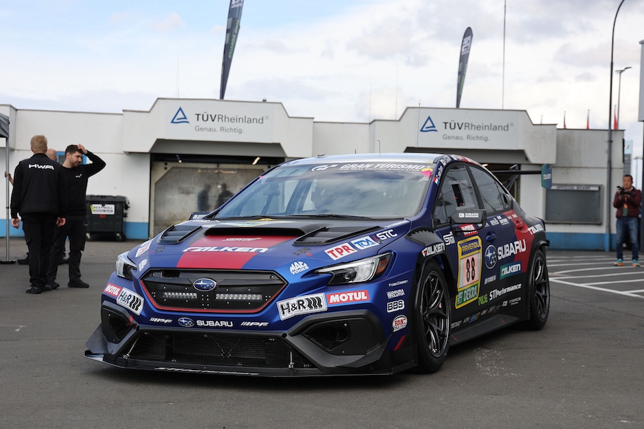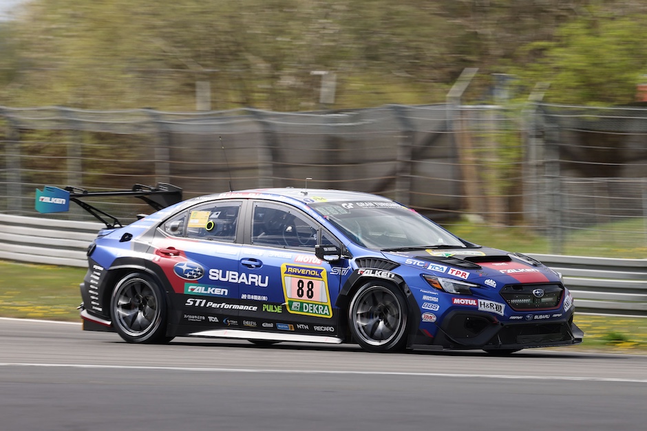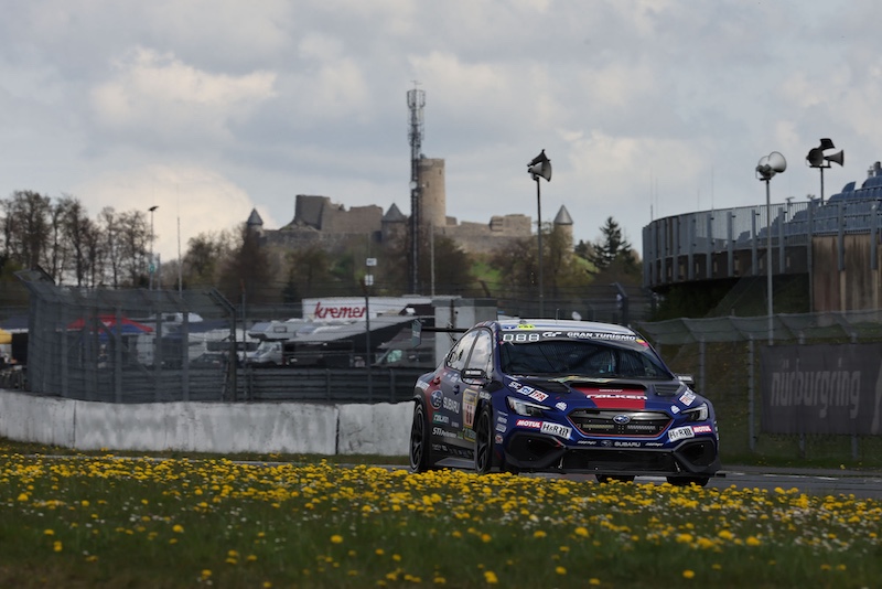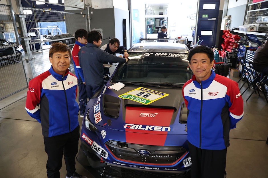 前日4月16日(木)にニュルブルクリンクのパドックに姿を現したSUBARU/STIチームは、本年新たに設定された金曜日のプラクティスセッションに向けた準備を進め、そのセッションを走行するチームのために用意された車検を受けました。SUBARU WRX NBR CHALLENGE 2926は、サーキットに近いアーデナウの街にあるチームガレージからトランスポーターに載せられてパドックに運び込まれており、昨年11月末に富士スピードウェイで行われたシェイクダウンイベント以来の走行準備となります。メカニックやエンジニアの一部が、早めにチームガレージに入り、そこでリアサスペンションの一部に変更を加えているため、17日のプラクティスセッションでチェックすることになっています。4月18日(土)、19日(日)の二日間にわたって行われる予選レースに出場するドライバーは、3年ぶりのニュルとなる井口卓人と2022年からチームに合流している佐々木孝太の2名です。井口は、「昨年10月にこのマシンには乗っており、3年前の仕様とどのように進化していかのレクチャーは受けています。久しぶりのニュルなので、とてもワクワクしています」、と語っていました。