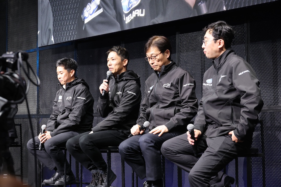 スーパー耐久トークショーでは、Team SDA Engineering本井雅人代表が、「SUBARU がスーパー耐久の開発車クラスに参加しているのは、レースを通じて技術を磨くことやカーボンニュートラル社会の実現に向けたチャレンジ、共に関わる社内人材の育成を目的としています。レースの現場は、短時間に解決しないといけない課題がたくさんあるので、課題解決能力の醸成には最適だと思います。また、将来お客様に提供できる技術を商品に活かしていくこと、さらにもっと具体的な車両やパーツについてもお届けできるようにしたいと考えています」、と語りました。さらに新開発のS耐参戦車両(名称は未発表)について、「モビリティショーでお見せしたPERFORMANCE-Bは、SUBARU既存アセットを組み合わせることでより楽しみやすいクルマを目指すものです。このS耐参戦車も同様で、昨年のHiPerf Xで培った技術や知見を活用しながら、ベース車両を発展・改良する形でゼロベース開発しています。本年は、昨年同様にチーム代表本井、チーム監督兼チーフエンジニア伊藤奨、プロドライバー井口・山内および社員ドライバーという体制で臨みたいと思います。これまでは開発部門主導のプログラムでしたが、今年は全社を挙げたコーポレート活動に昇華させようとしています。そういう意味で、新しい参戦車両のカラーリングはコーポレートカラーのブルー基調としました」、と続けました。この新しいS耐車両も早い時期にテスト走行を重ね、3月上旬に予定されているスーパー耐久公式テストおよび開幕戦に臨むとのことです。