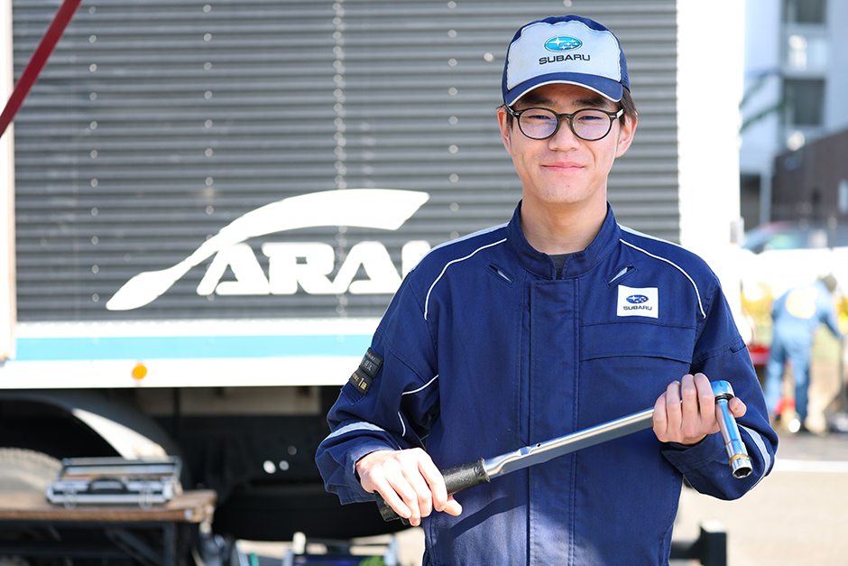 「幼い頃からクルマが好きで、その中でも特にスバルが好きだったので神奈川スバルに入社しました。まだ入社2年目ですが、ラリー車は、技術的なことは車検整備でやっている内容や作業をするクルマとは全然違いました。短時間ですが練習を重ねることで、整備できるようになったなと思っています」