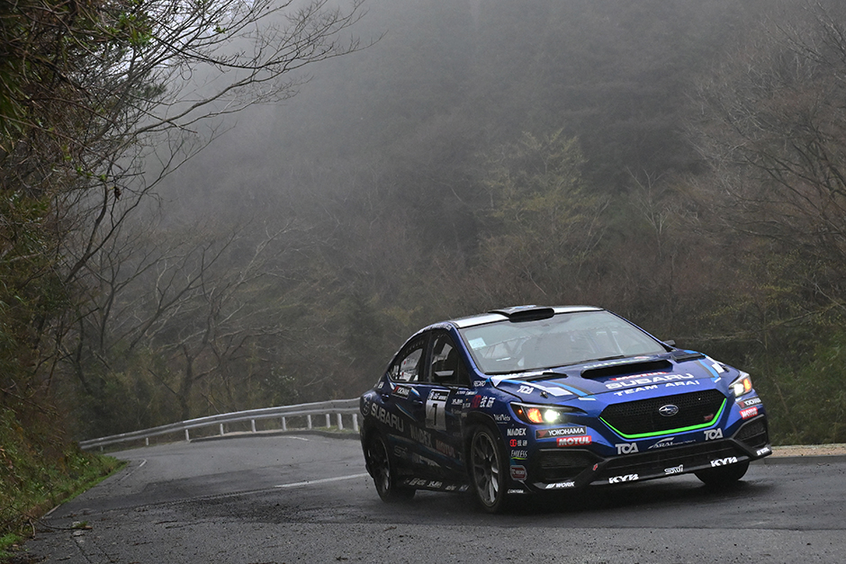 全日本ラリー選手権第2戦「SAGA RALLY NATIONAL CHAMPIONSHIP 2026 SUPPORTED BY BLUE BATTERY caos」は4月4日(土)、競技初日となるレグ1の走行が行われ、SUBARUがサポートする新井敏弘/安藤裕一組は、初日を6番手で終えました。