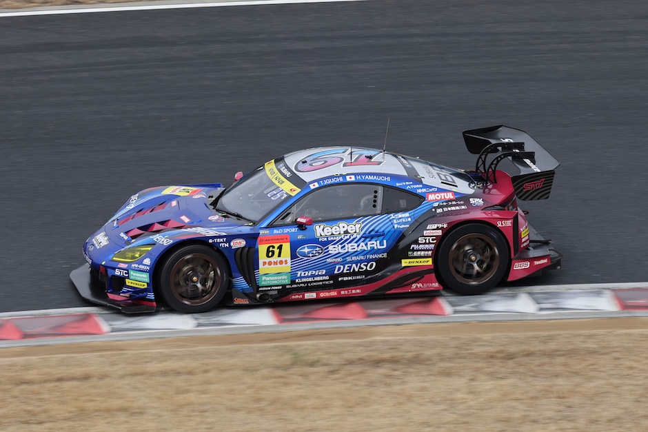 3月6日(金)は、金曜日のため一般公開はなく、観客がいない状態での公式テストとなりました。曇りで気温11℃のコンディションは過ごしやすく、14台のGT500と28台のGT300車両は精力的にシーズン前の走り込みを繰り返していました。両クラス全車が混走で走る中、61号車SUBARU BRZ GT300は井口卓人がコースイン。1回目のセッションは、数周走ってはピットインしてセットアップチェンジしながら38周を走行し、終了間際には今年もリザーブドライバーとしてチームに帯同している奥本隼士がアウト・インラップ(計測なし)のみ走行しました。井口のベストタイムは17位でした。奥本は、「貴重な機会をいただけてありがたいです。僕は、サードドライバーとして認めていただけるよう、日々勉強だと思っています。今年は、GR86/BRZカップのほか、海外レースにもチャレンジできそうなので、引き続き修行を続けます」、と語っていました。午後にセットされた2回目のセッションも引き続き井口が走行。何度かピットインしながら、合計39周を走行してベストタイム1:26.535でクラス12番手でした。